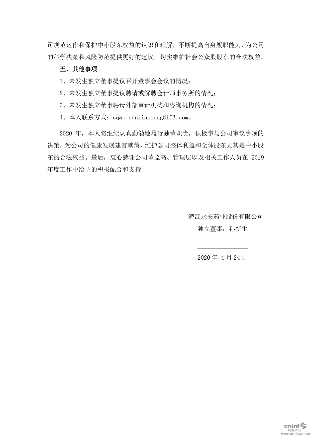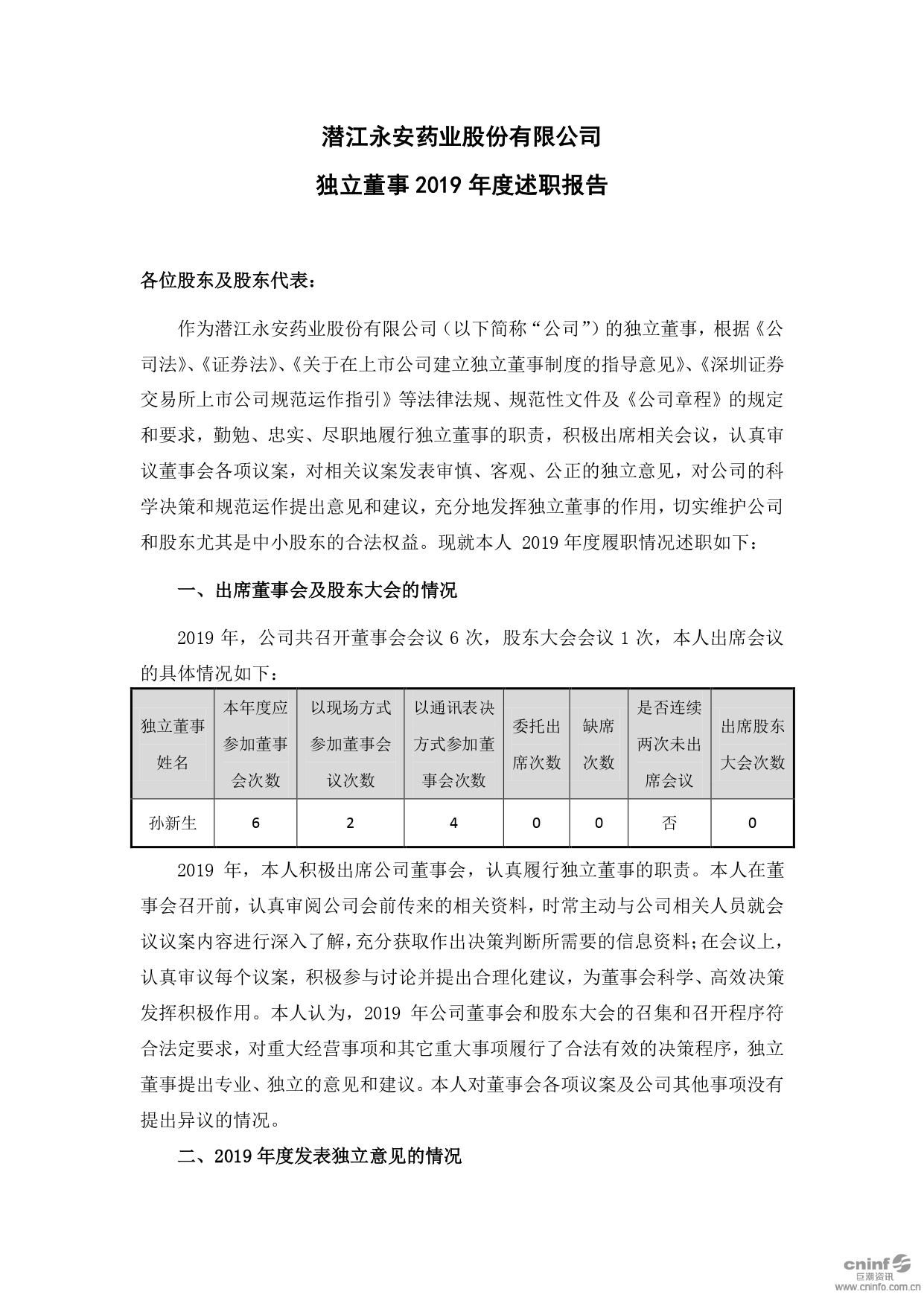 獨(dú)立董事2019年度述職報(bào)告(孫新生)