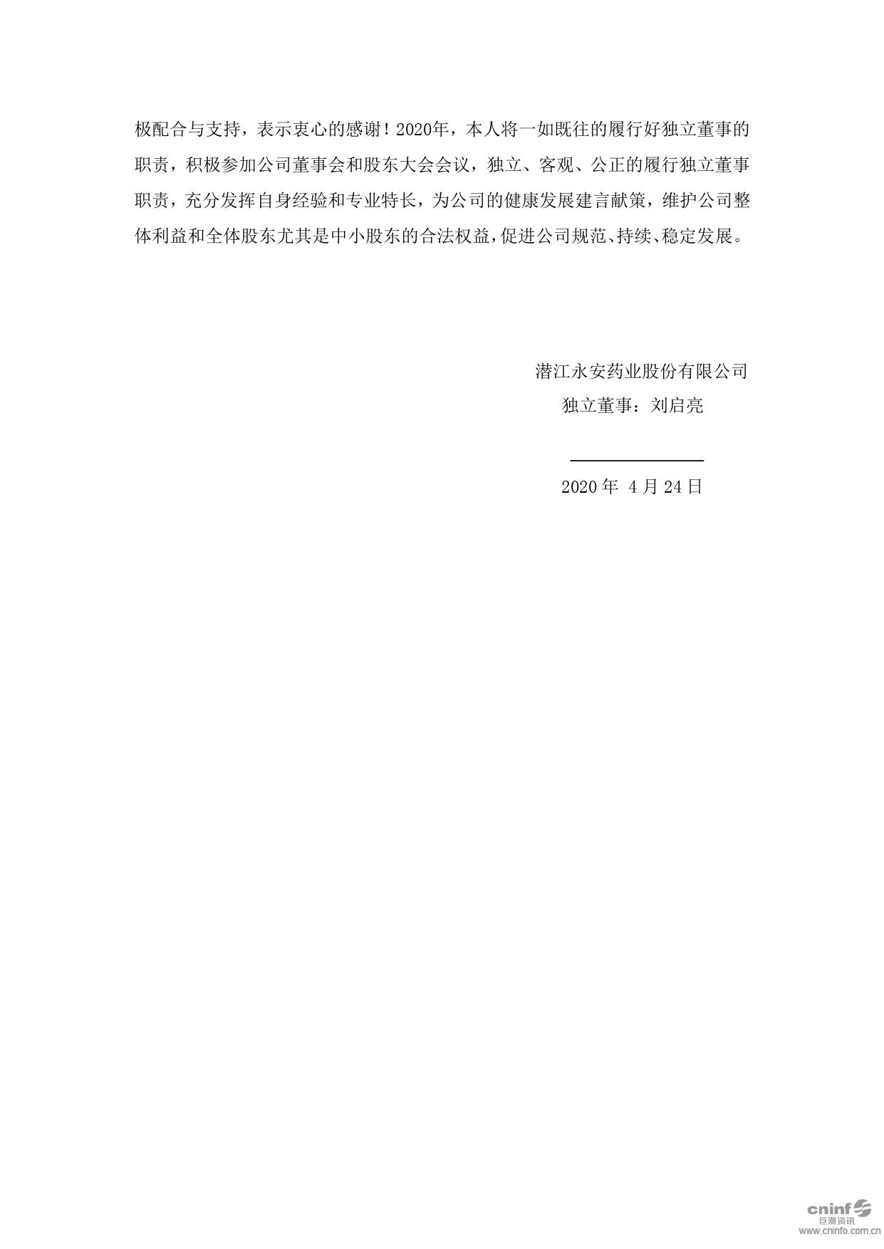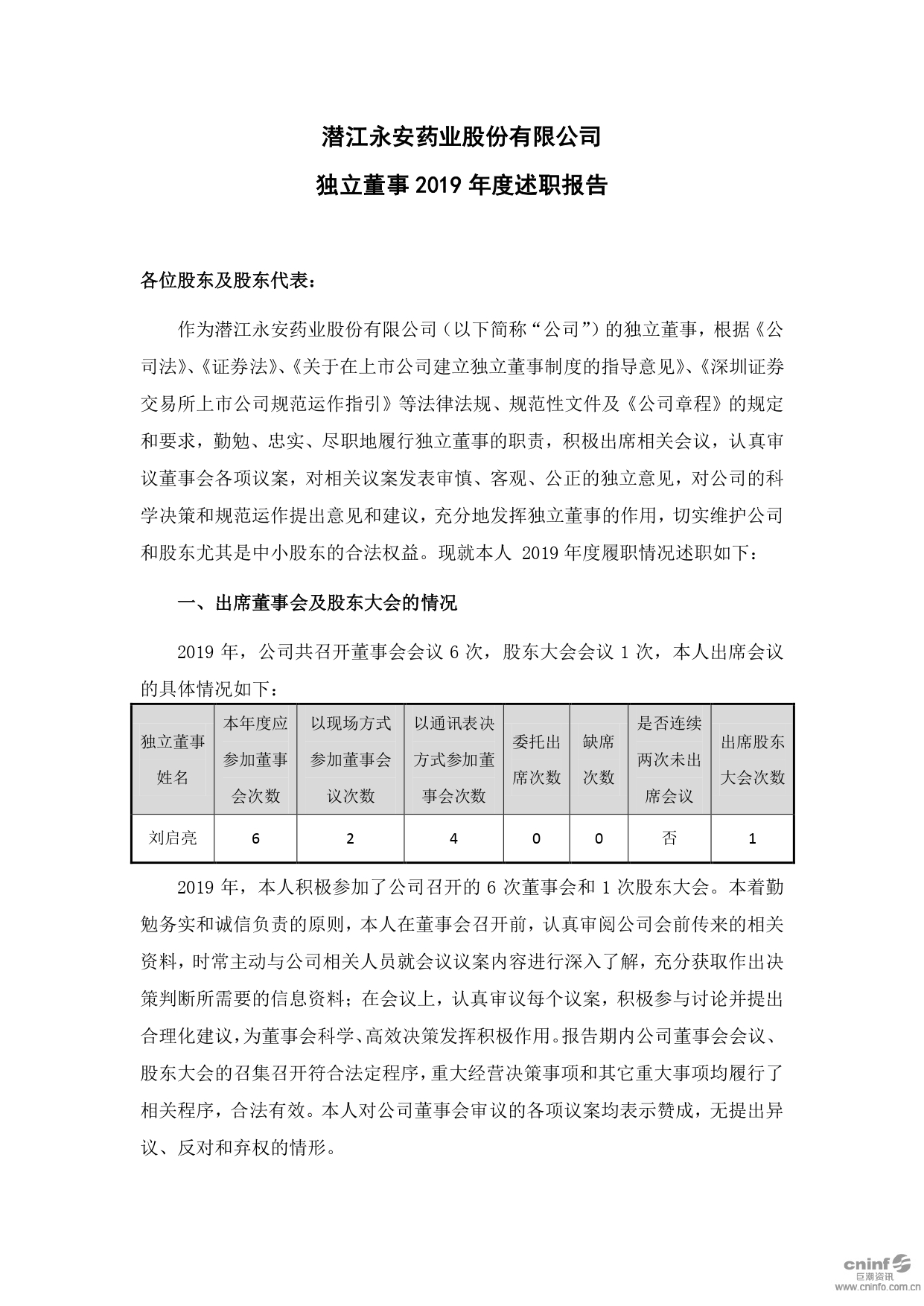 獨(dú)立董事2019年度述職報(bào)告(劉啟亮)