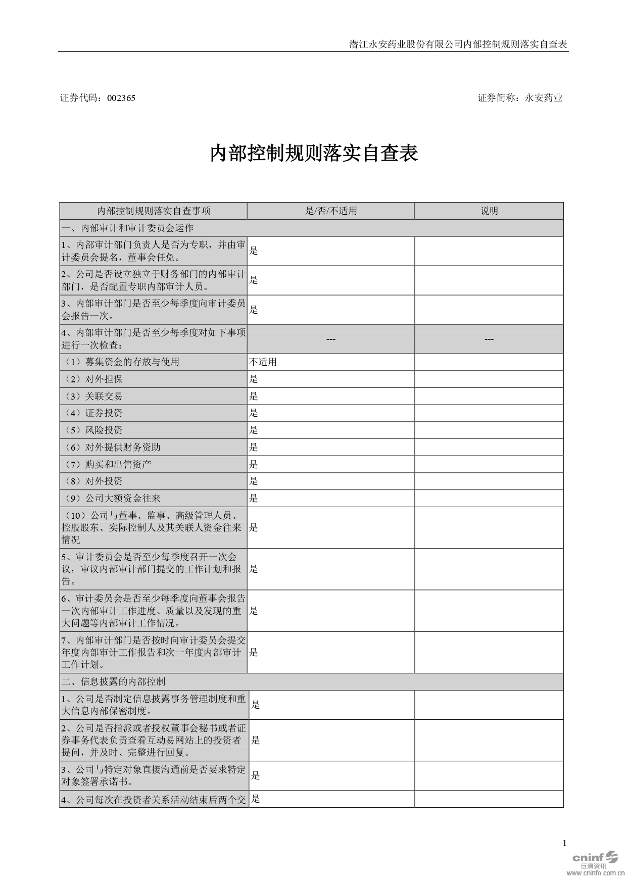 內(nèi)部控制規(guī)則落實自查表