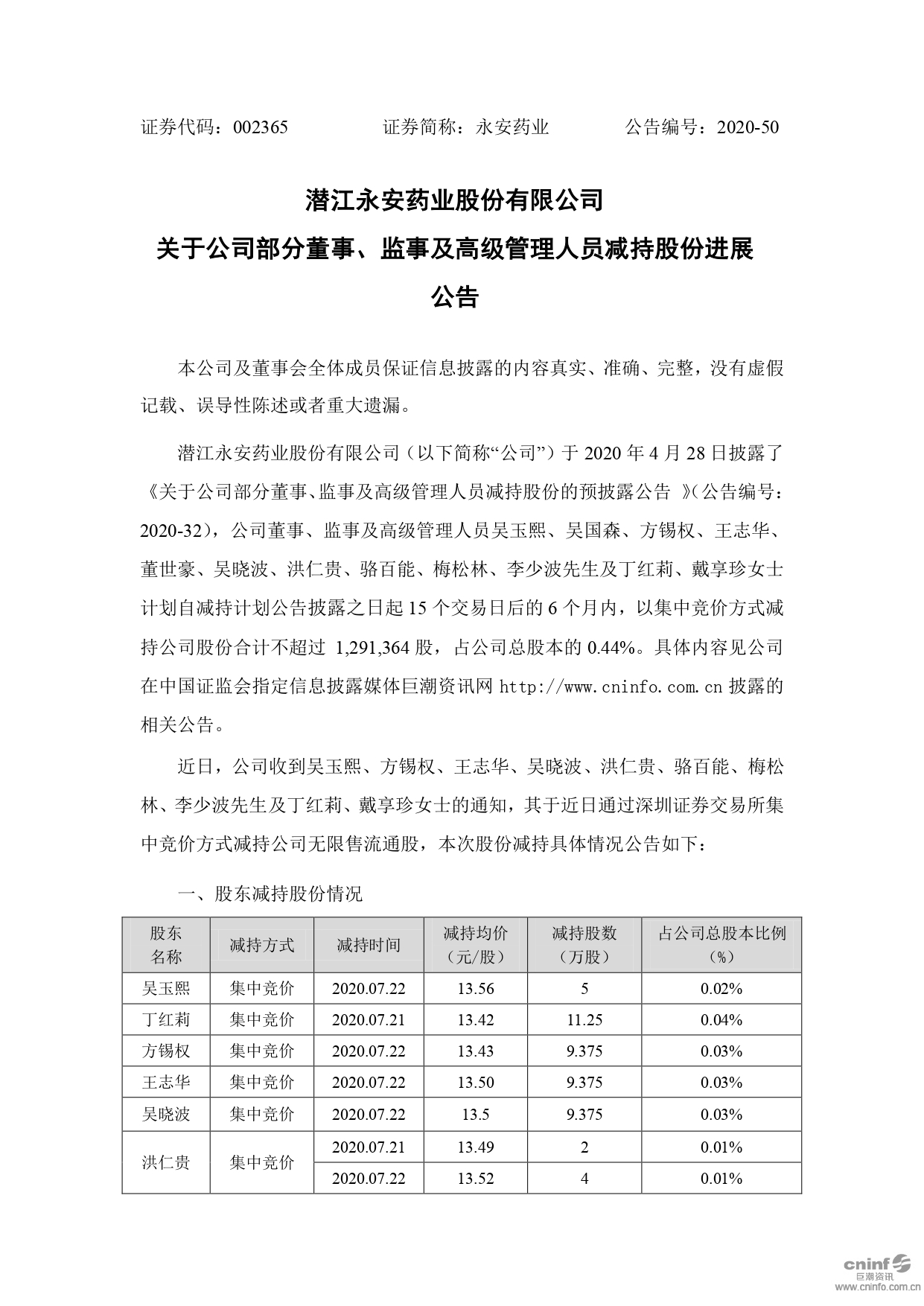 關于公司部分董事、監(jiān)事及高級管理人員減持股份進展公告
