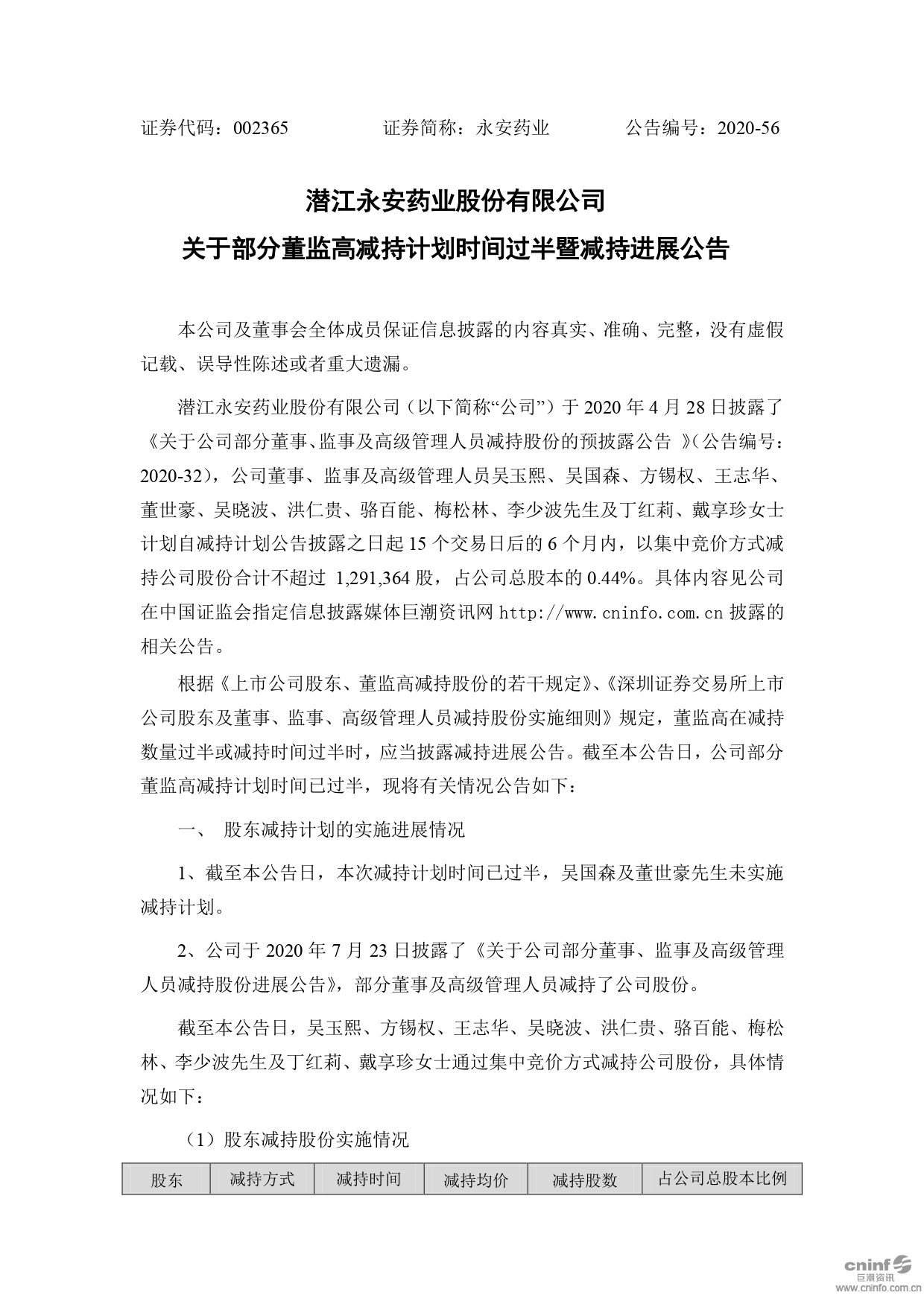 關(guān)于部分董監(jiān)高減持計劃時間過半暨減持進展公告