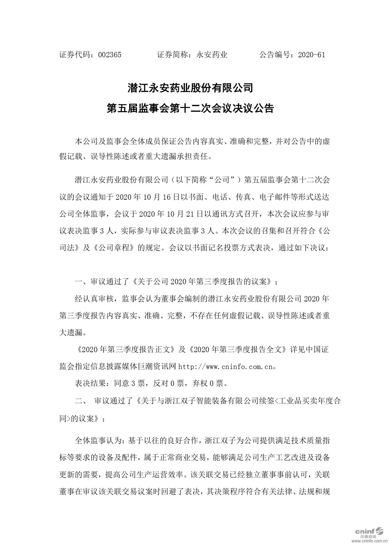 第五屆監(jiān)事會(huì)第十二次會(huì)議決議公告