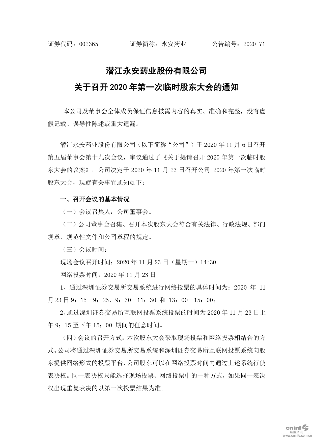 關(guān)于召開2020年第一次臨時(shí)股東大會(huì)的通知