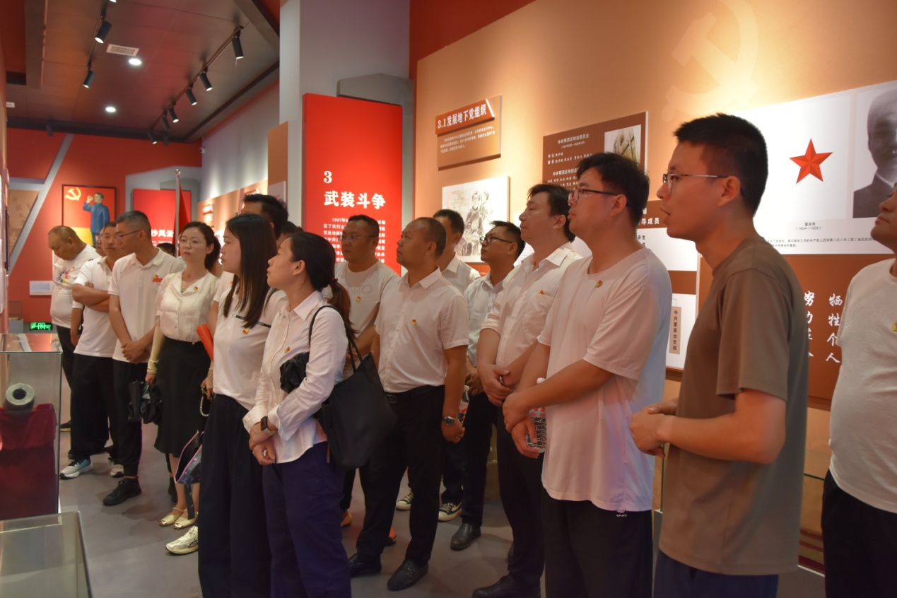 步入紀(jì)念館內(nèi),在講解員的深情講述中,大家跟隨歷史的足跡,認(rèn)真參觀珍貴的革命文物和詳實史料?!皠⒊嗌臼墙瓭h平原早期的中共黨員、馬克思主義的傳播者,是荊沙地區(qū)工農(nóng)運動的領(lǐng)導(dǎo)者、堅定的共產(chǎn)主義戰(zhàn)士。當(dāng)敵人利用群眾威脅他時,他毅然決然挺身而出,用生命詮釋了‘不怕犧牲、英勇斗爭’的崇高精神……”一幅幅泛黃的照片、一件件斑駁的實物、一段段感人的故事,生動再現(xiàn)了革命先輩們“堅持真理、堅守理想”、“對黨忠誠、不負(fù)人民”的赤膽忠魂。革命先輩在極端艱苦條件下展現(xiàn)出的堅定信仰和犧牲精神,深深震撼著每一位在場人員,大家接受了一次深刻的思想洗禮和精神熏陶。